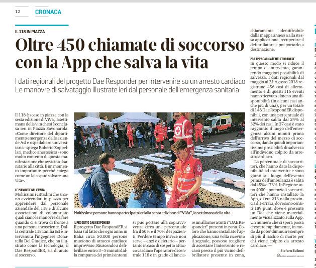 Il 118 di Ferrara, in collaborazione con le associazioni di volontariato convenzionate, si mette a disposizione dei cittadini per educarli ai principi della rianimazione cardiopolmonare con l'ausilio di manichini e materiale informativo.