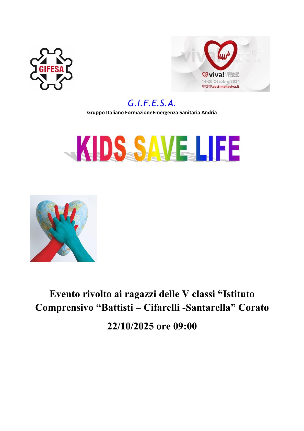 L’evento si rivolge in modo particolare ai ragazzi in quanto episodi di arresto cardiaco si verificano in modo inaspettato, perciò se si conoscono le manovre salvavita, cos’è un defibrillatore e come funziona possiamo salvare una vita